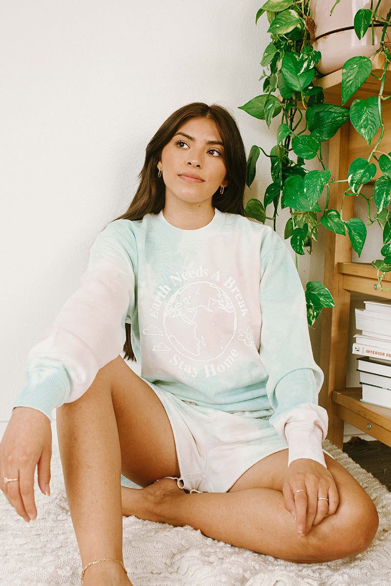 As a part of the Earth Needs A Break Set, this crewneck features a gentle cotton candy tie-dye wash. Snuggle up with this extra-soft fleece made responsibly from recycled cotton and recycled polyester.