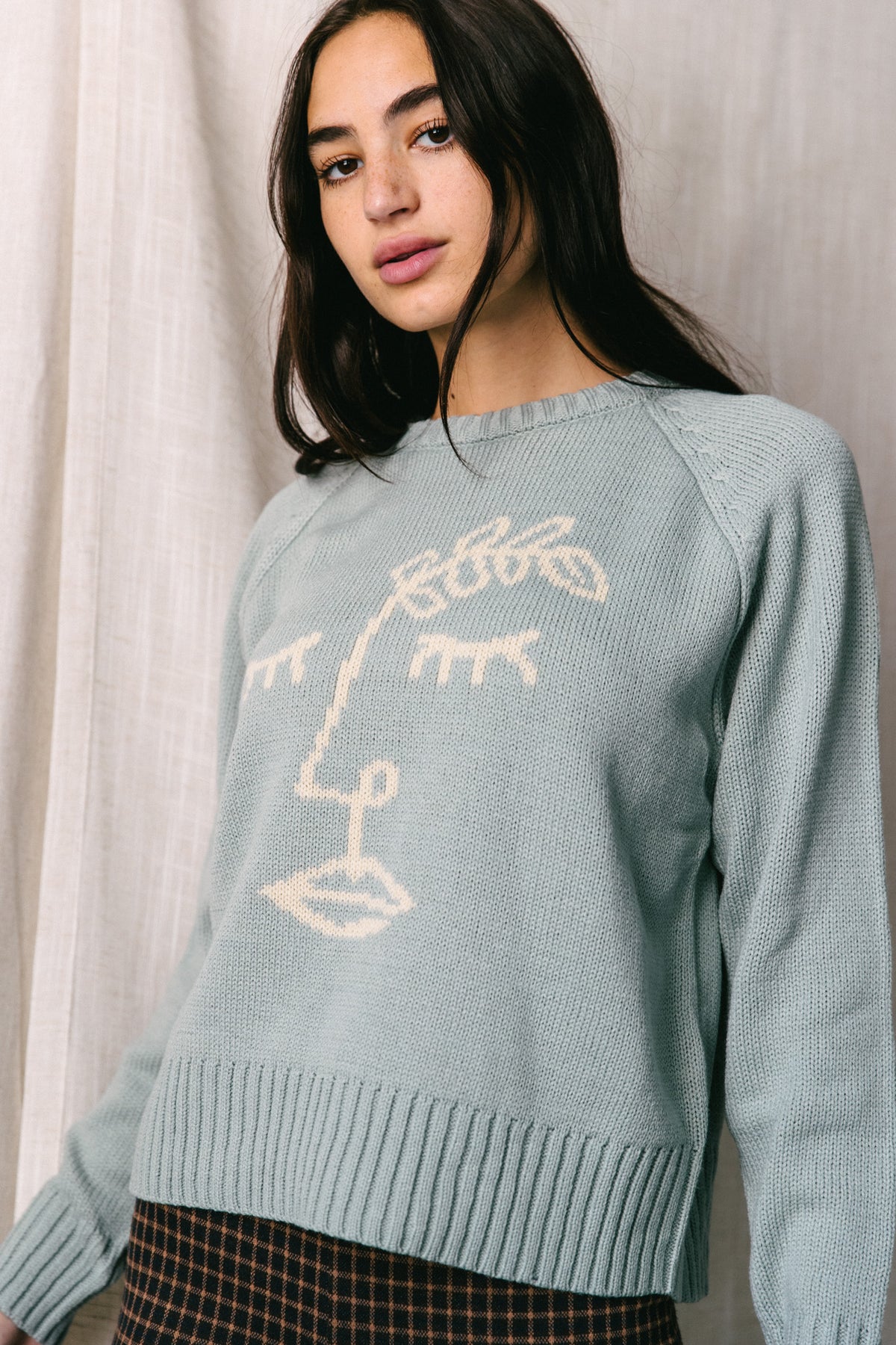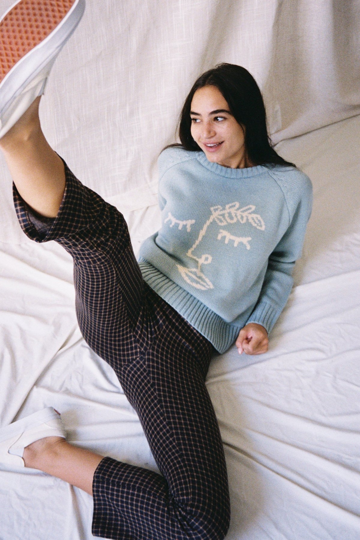Medium-weight, recycled knit sweater with a ribbed neck, hem, and sleeves.