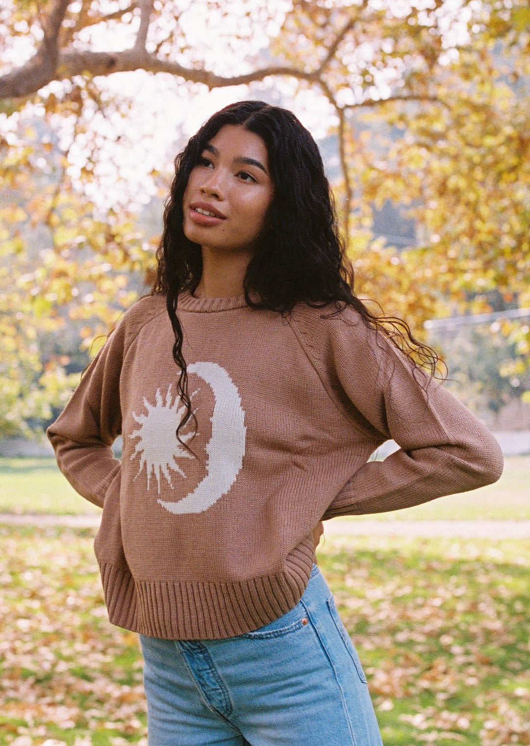 A medium-weight knit with a ribbed neck, hem, and sleeves, this piece is perfect for layering as sweater weather approaches. Made from yarn composed of recycled materials and featuring classic designs, this style is an effortless choice.